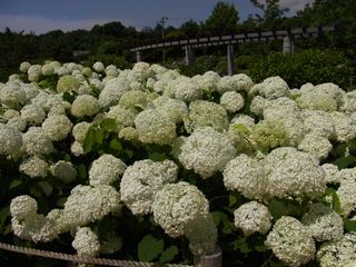 相変わらず、白いあじさいと、ガクあじさいだけが元気。