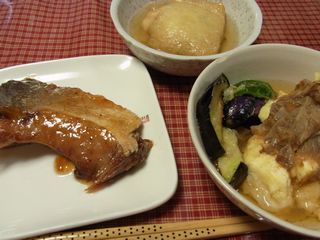 揚げだし豆腐に、素揚げした茄子とピーマンを加えたもの