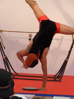 逆立ちでお箸もって、パワーの源・・・飴ちゃんを食べます。