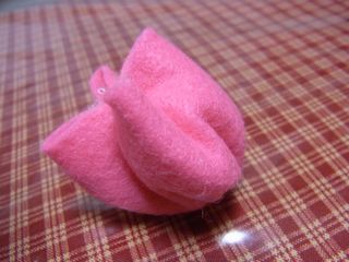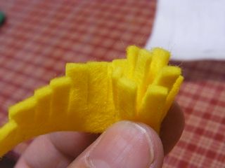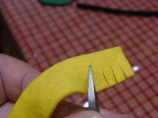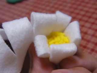 ゴムの結び目をフェルトのなかに隠す方がきれいに仕上がります。