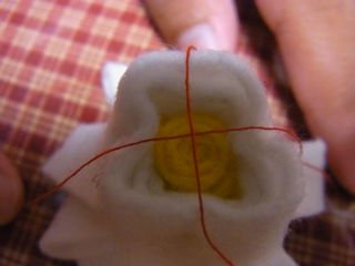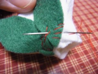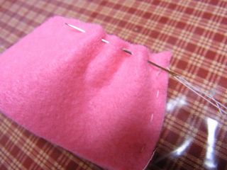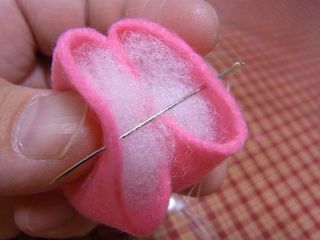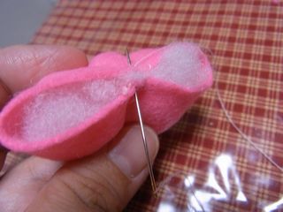 中をへこませているので結構深めの部分、全部のフェルトに針が通るようにしてくださいね。