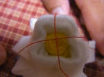 黄色、白ともに巻く前に残した部分(1cmの帯の部分)にボンドを薄く塗り