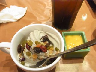 別腹で黒ごまソフトに、ドライフルーツをトッピングしてみました。