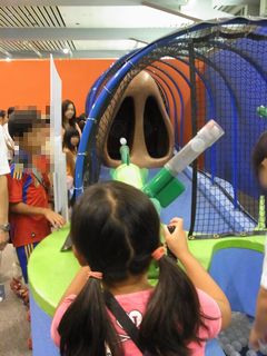 4~5球ぐらいづつ、挑戦させてもらえ、全員で一定以上鼻に玉がはいると