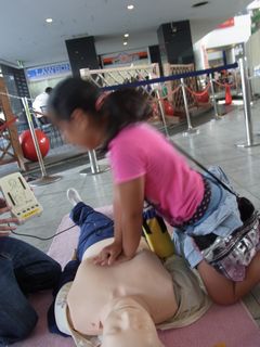 ある医大のブースでは、AEDの使い方を教えてくれました。