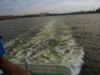 あまりの波に、大阪湾に出ると危ないのでコース変更になったらしい。