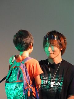 今回は綾波レイをもたせたお客さんをそのまま誘導して、舞台にまでひっぱりあげて、