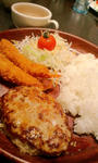 ハンバーグ100gと、エビフライのランチです。