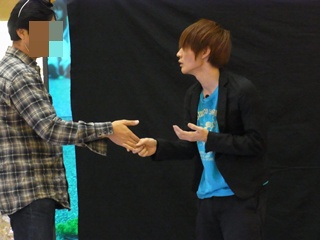 のぞみクンから男性にハートの風船を渡そうとして・・