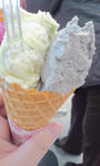 これは、抹茶クリームチーズと、ゴマの、ダブルコーン。