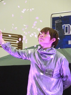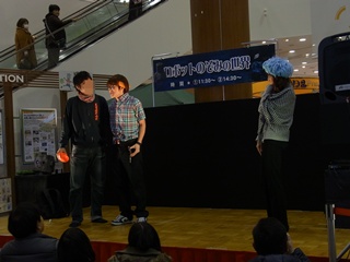 途中、お客さんを引き入れて舞台にたたせ、一緒にお料理