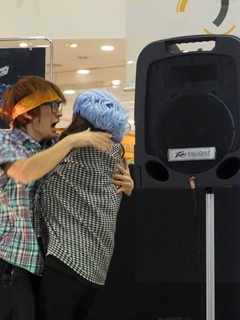 旦那様を舞台にあげて「これ、録画モードにして!」って旦那様が持っているスマホを指していう。