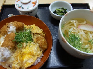 牡蠣フライの卵とじ丼と、小さいうどんの定食にした。