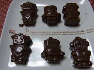 昨日のロボットの型に、今度はチョコを流し込んでみた。