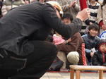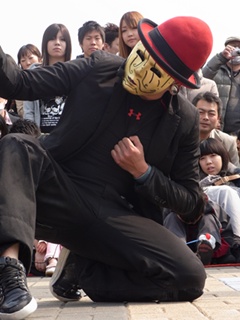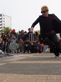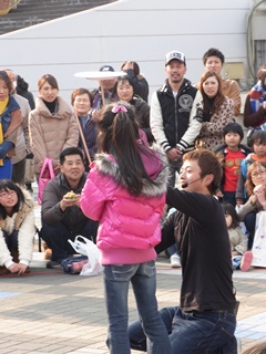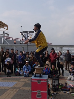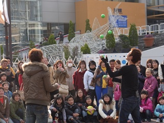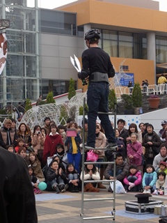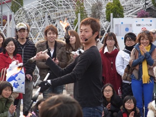 ファイヤージャグリングの時に、投げてもらったお客さんのお兄さん、