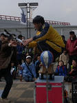 アメリカンな柄のパンチングマシンを叩きながらのお手玉!