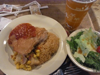 スモークチキンメキシカンライスと、ベジタブル添えのセット1120円を食べました