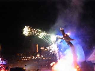 船から放水して作った水の壁に映像が映し出されていたらしいけど、
