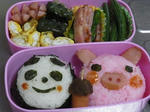 ピンクブタは、さくらでんぶを混ぜたご飯を丸くして、鼻と耳はウインナーを切って、焼いて乗せてます。