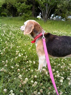 クローバーがいっぱい咲いてるところで一枚。