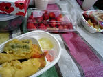 ほか弁と父の畑で今朝取れたイチゴを頂く