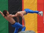 ちょうどこのお猿さんたちが高いハードルを飛ぼうとしたら