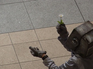 花との距離が、倒れてしまったロボットの悲しさをよけいに感じさせられる。