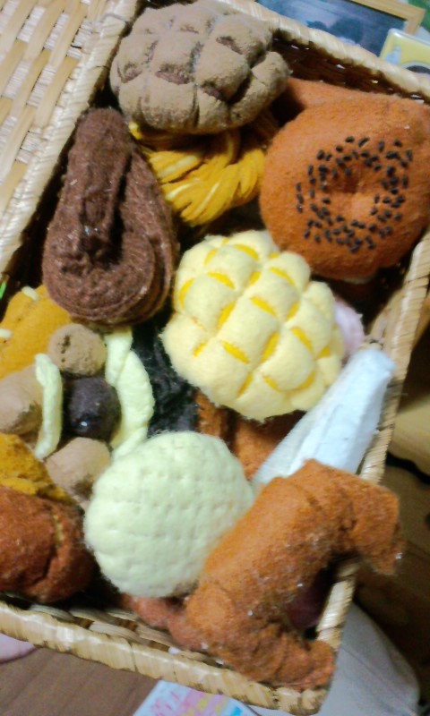 フェルトで作った、パンとかケーキとかのおままごとグッズ。
