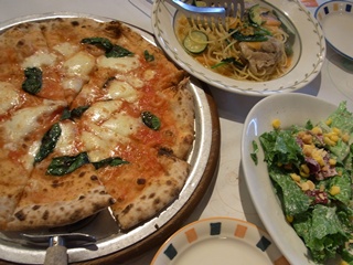 ランチは普通のパスタやピザに+400円で、サラダとかタルトとか飲み物とかついてるけど、