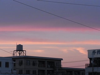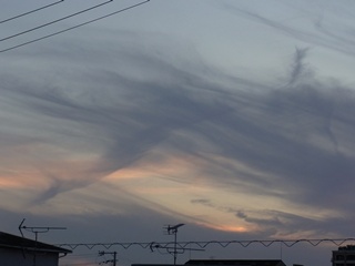 台風のせいか、雲の形が変で夕焼けが綺麗だった
