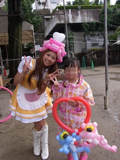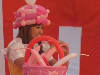 すごく乙女ちっくに座って、バルーンを作っていく、まさに萌えもえ~