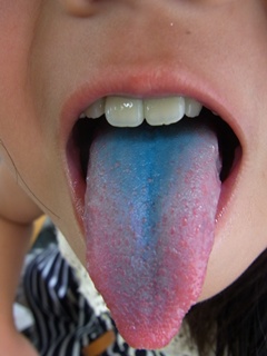 舌が真っ青になっていました