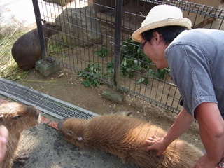たまたま水浴びから帰って来たカピパラをなでなで。