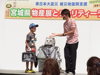 のぞみ君も炎天下でのパフォ、ロボットになるし