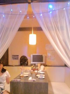 ここは、掘りごたつっぽくみえて、全部がソファーなの。