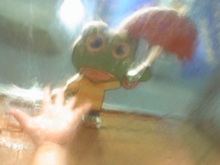 この写真の後ろ、透明な三角は、さっきま☆がのぼってたジャングルジムの最上階。
