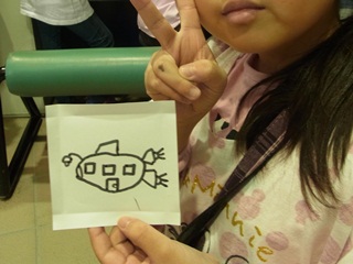 大画面に自分の描いた絵が宇宙遊泳をしだします。