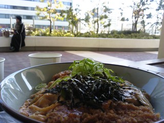 テラスでカツ丼!!