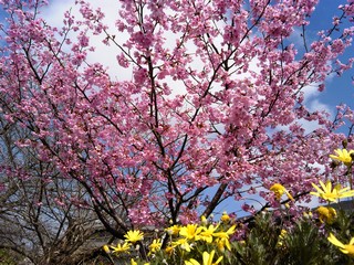 菜の花と桜のコラボってよくあるけど、菊と桜って珍しくない?