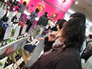 やっぱり綺麗なお姉さんがワインの試飲配ってて、ふたりが飲む~。