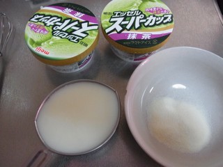 3.アイス(ちょっと溶かすためこちらもレンジで10秒チン)と1と2をまぜまぜする