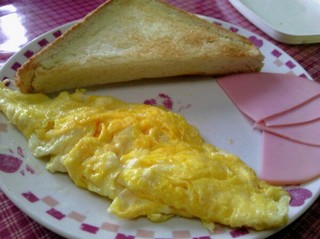 自分でフライパンに油敷いて、卵をやいたようだ!