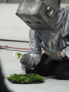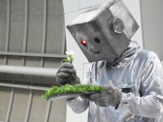 花を踏んでしまうロボット。