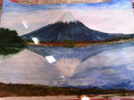 湖に映る山は、薄く白を重ねて塗ると、上にある山とちょっと違って見えます。