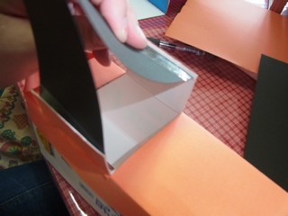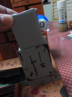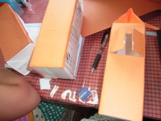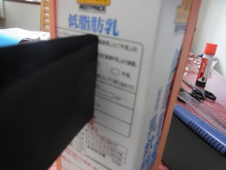 こういうのを合わせて、土台(今回は「白い恋人」の箱を牛乳パック3個サイズに切ってつくりました)にはり、
