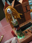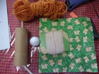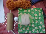 発泡にプラスチック用ボンドを塗って毛糸束を貼り付けて、髪の毛にする。