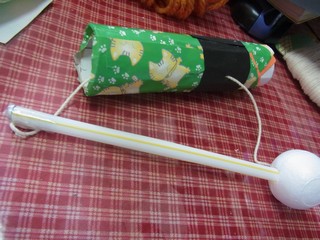 ストローの反対側には発泡スチロールの玉(手芸屋さんで売ってます)を差し込む。