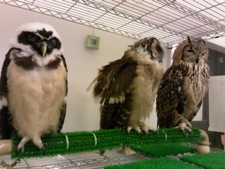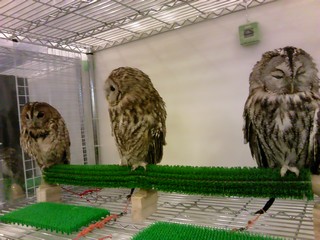 中型のふくろうは3匹。小型は2匹が、触れます。