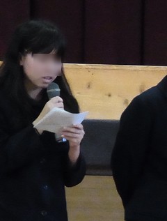(保護者席は会場の体育館の後ろのほう。司会者は一番前なので、遠くて、わかりにくかったのもあるんですけどね)