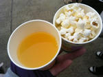 ジュースとポップコーンでおひるごはん。